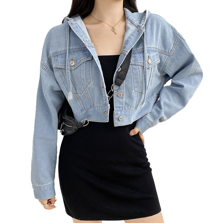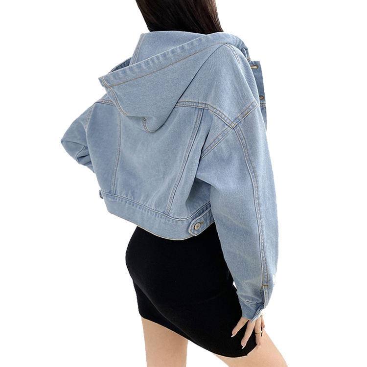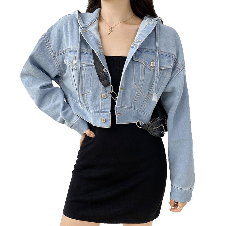 Wholesale Best Quality Fashion Hooded Regular Denim Jacket Button Detail Washed Finish for Women Autumn/Winter/Summer Casual