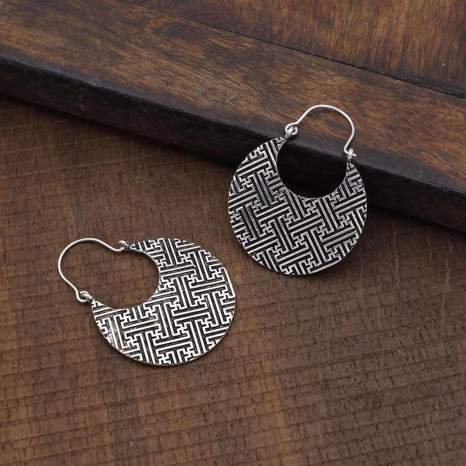 Best Selling 925 Sterling Silver Mandala Carved Ethnic Hoop Earrings for Women Trendy Wedding Fashion Jewellery Wholesale Big