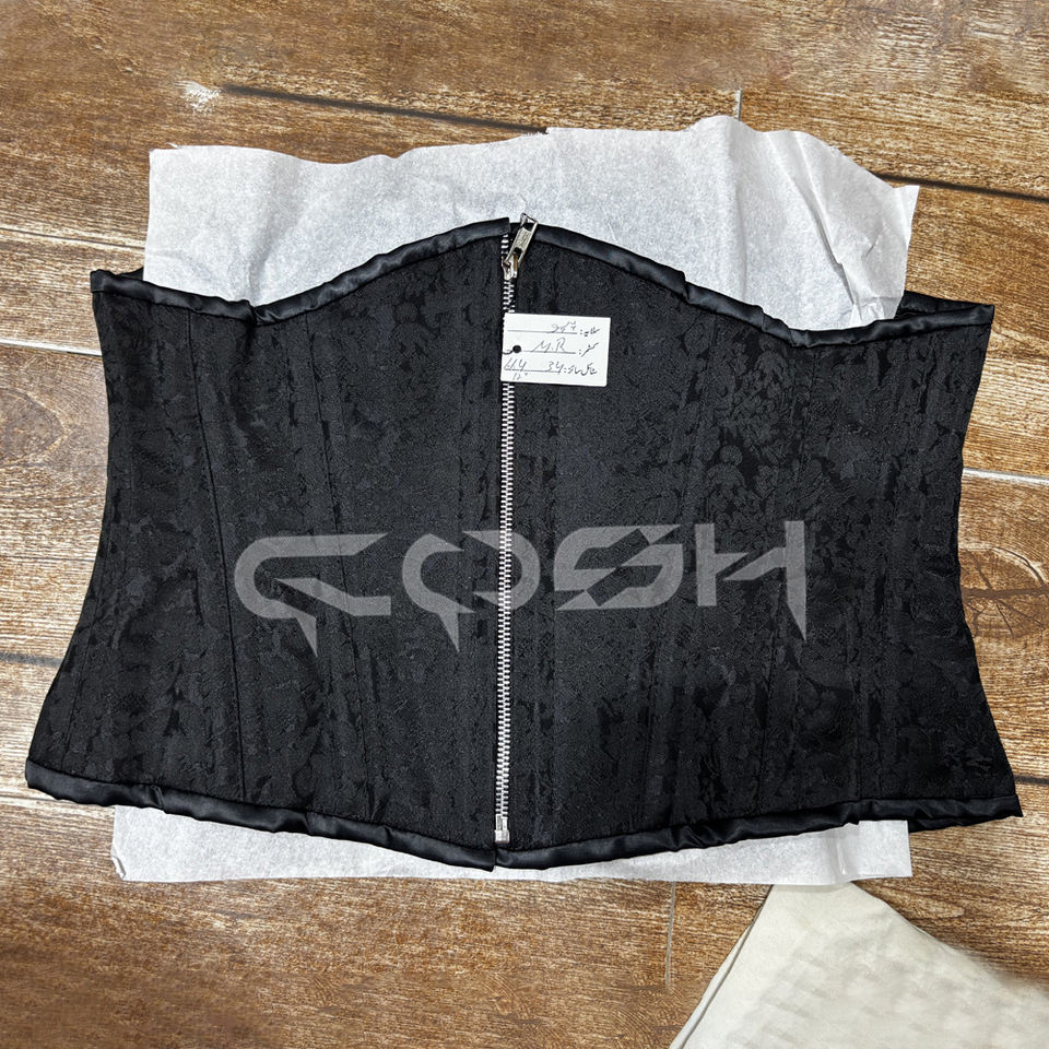Wholesale Black Brocade Underbust Steel Boned Fashion Waspie Corset With Adjustable Back Lace-Up