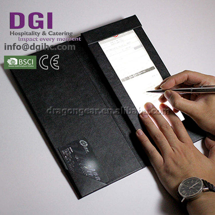 Wholesale Black Faux Leather Led Bill Folder for Restaurant Rechargeable Restaurant Bill Holder with Led Light