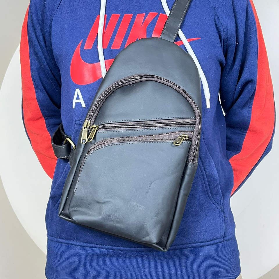 Wholesale Black Genuine Leather Chest Bag for Men & Women's High Quality Cowhide Multifunction Crossbody Bag for Outdoor Travel