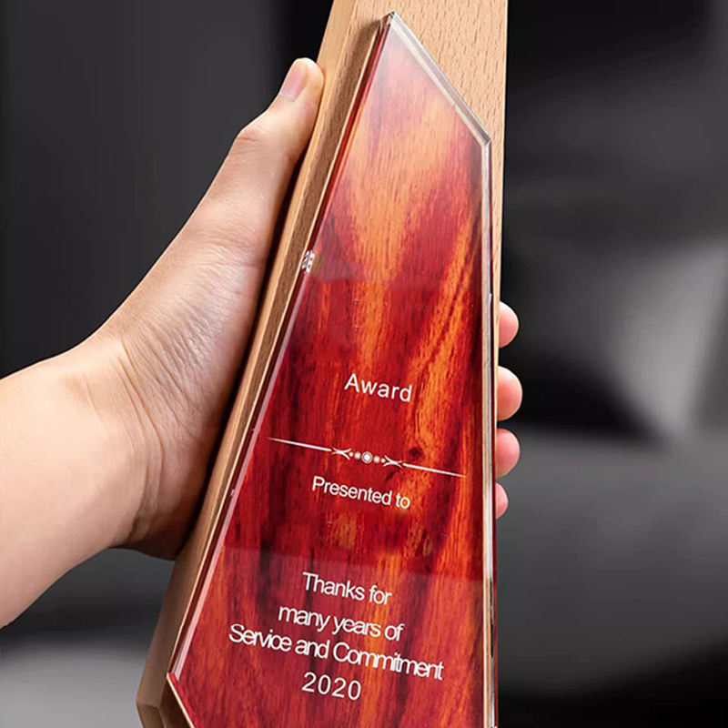 Wholesale Black K9 Crystal, Wooden Trophy Awards Custom Company Annual Wooden Glass Trophy/