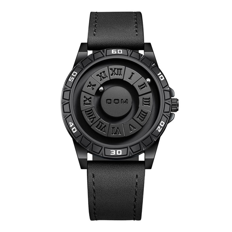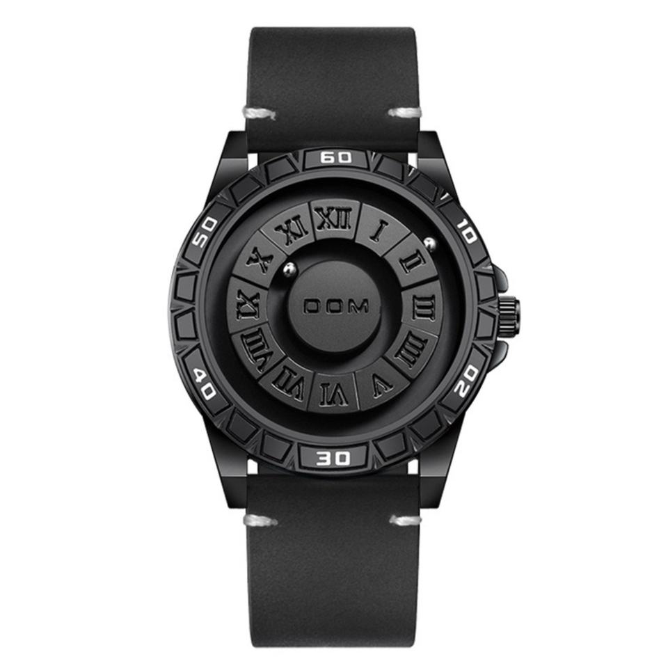 Wholesale Black Personalised Walking Beads Quartz Watch for Men Fashionable Stainless Steel Wrist Watch Ronda Movement Leather