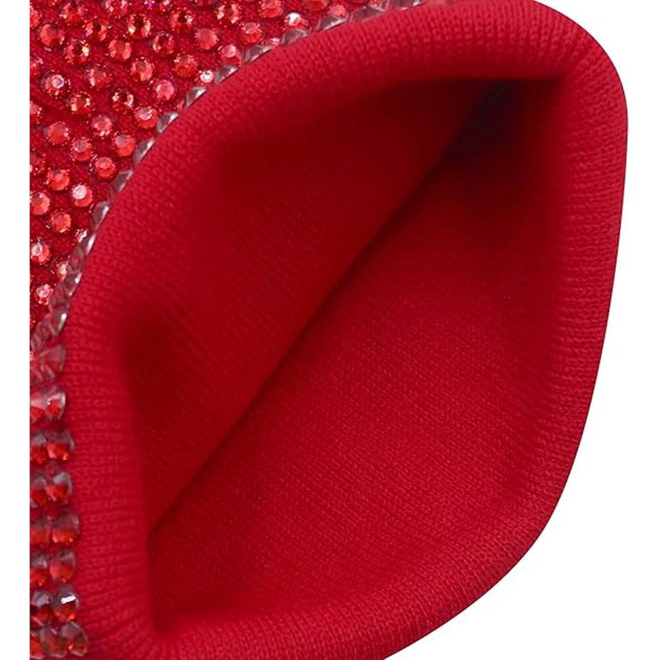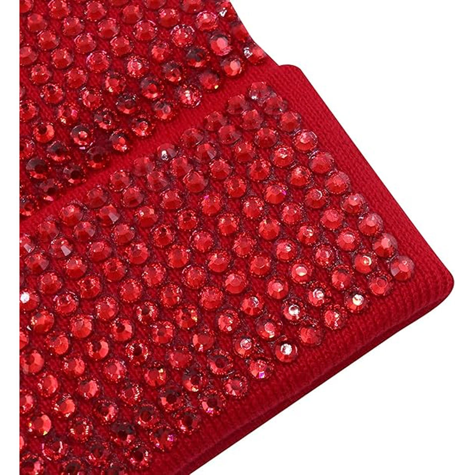 Wholesale Black Rhinestone Beanie Hat Rib Knit Winter Cap Unisex Soft Warm Stretch Skull Cap Custom Logo Hat