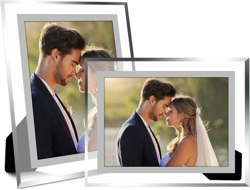 Wholesale Black Wooden L-Shaped Base Photo Frame Double Sided Glass Display 5-7 Inch Pictures Vertical Horizontal Orientation