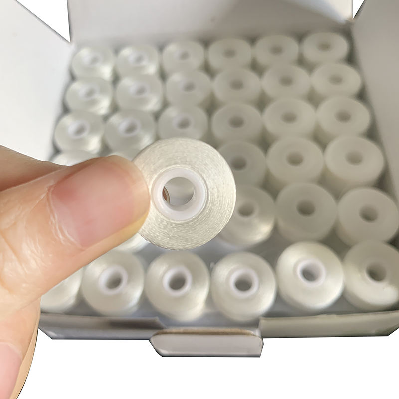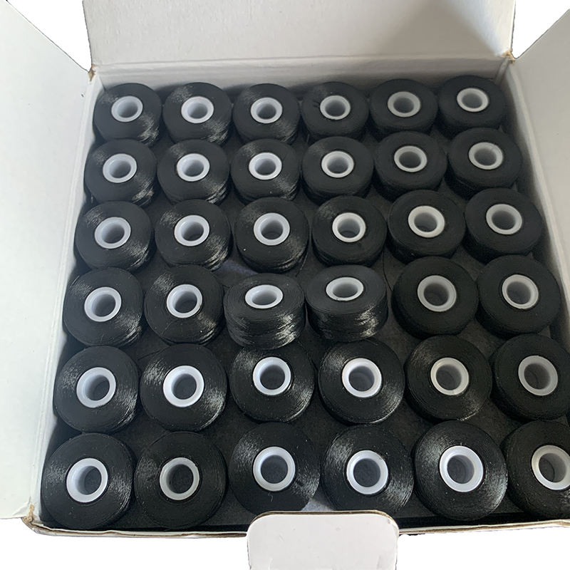 Wholesale 144pcs L Style 75D/2 60wt Polyester Filament Embroidery Bottom Thread Bobbins Black White Borderless Pre Wound Sewing
