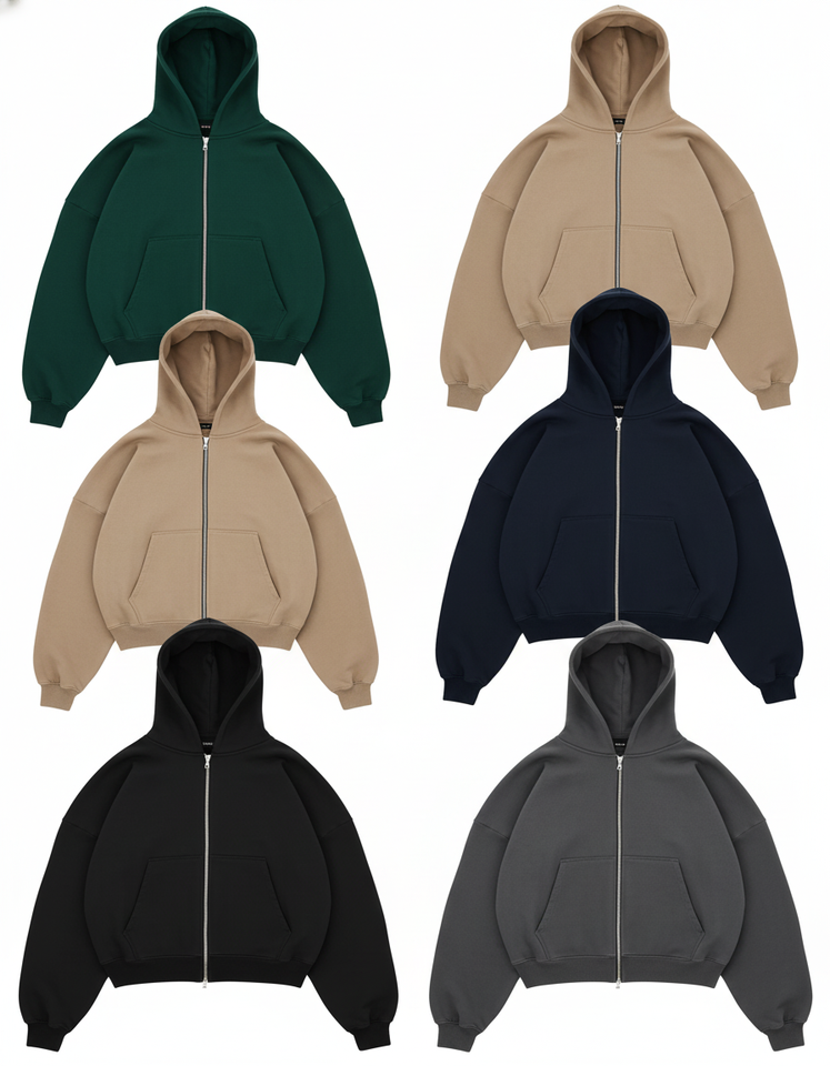 Wholesale Blank Black Zip Up Hoodie - Streetwear Baggy Fit Jacket for Men & Women, Bulk Supplier