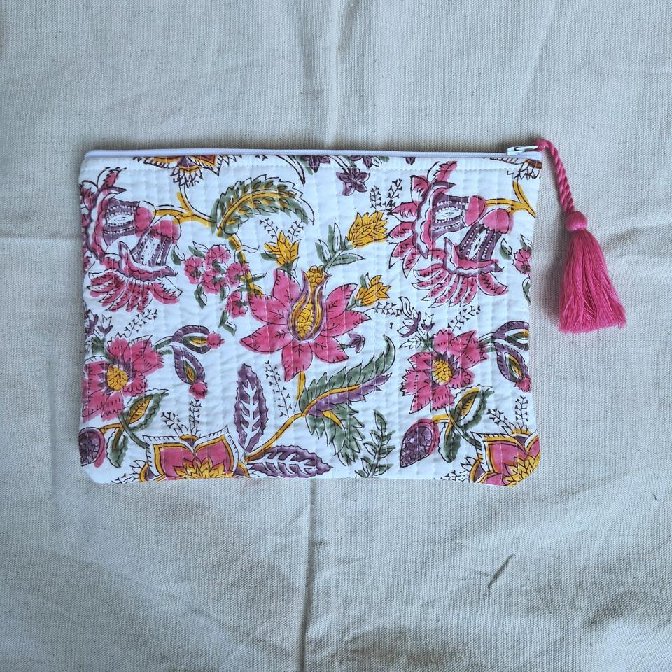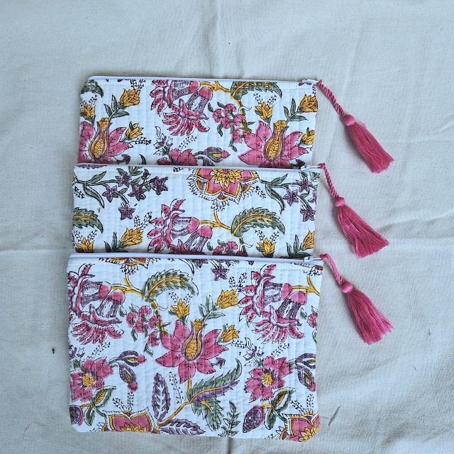Wholesale Block Printed Fabric Cotton Quilted Pouch Bags With Zip Closure Toiletry Cosmetic Pouch Women Accessories Bags