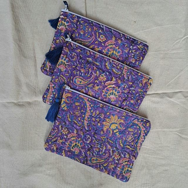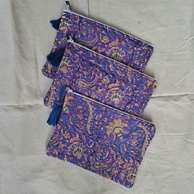 Product name:Beautiful Hand Block Printed Cotton Quilted Pouches Bag