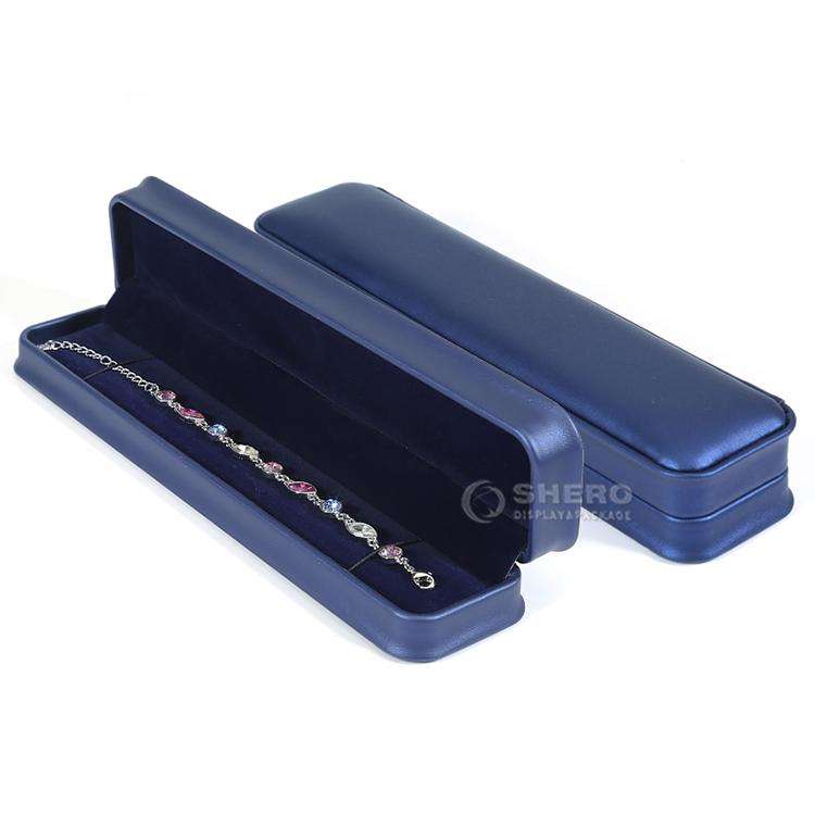 Wholesale Blue Custom Premium PU Leather Boxes for Necklace Bracelet Ring Earrings Boxes Jewelry Box
