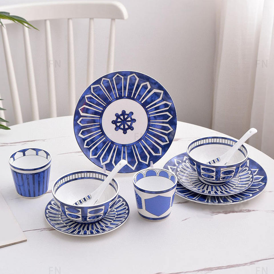 Wholesale Blue Modern Simple Dinnerware Set Ceramics Bowls and Plate Dinner Set 10pcs With Gift Box