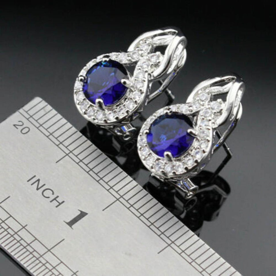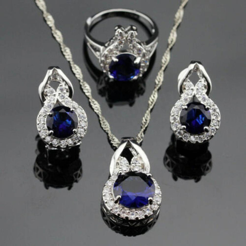 Wholesale Blue Sapphire Jewelry Set Women 925 Silver Necklace Pendant Earrings Ring