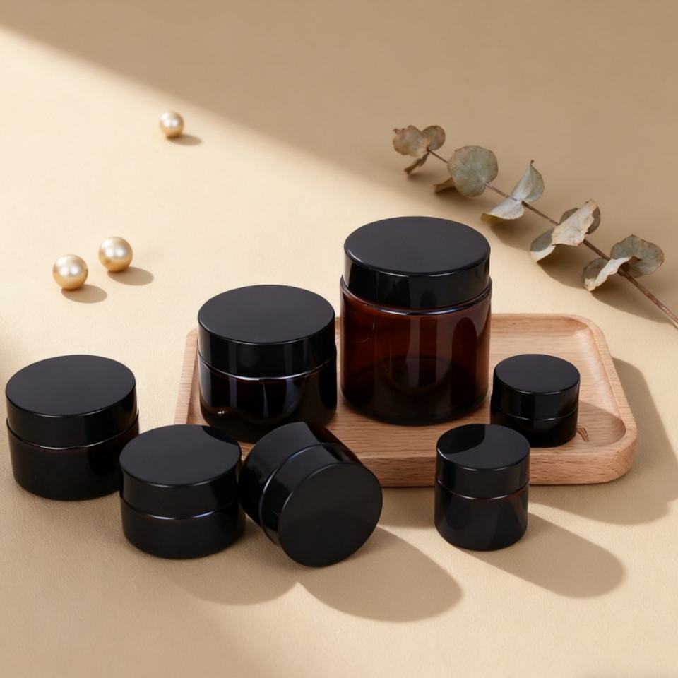 Wholesale Body Face Cream Bottle Refillable Empty Cosmetic Skincare Amber Glass Cream Jar 5g 15g 20g 30g 50g 100g