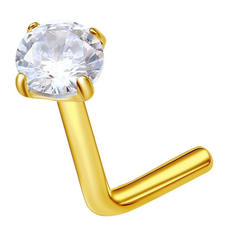 Wholesale Body Piercing Jewelry-ASTM F136 Titanium L Shape Nose Stud Zircon Inlay Labret Piercing Cut Wedding Gifts