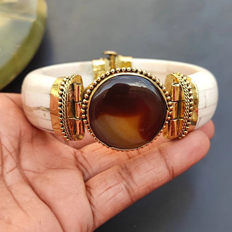 Wholesale Bohemian Bone Accented Brass Cuff Bracelet Handmade Eco-Friendly Natural Crafts Bangle for Global Buyers