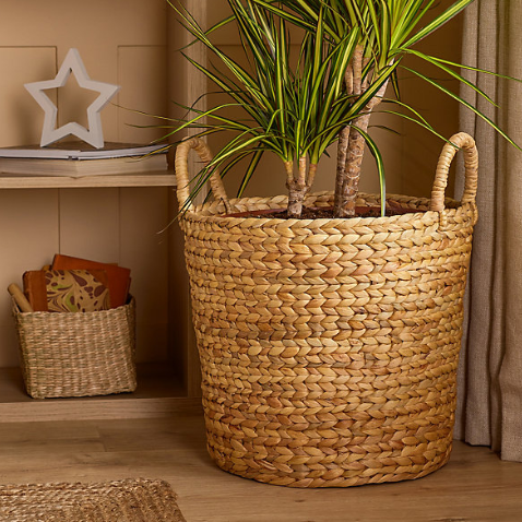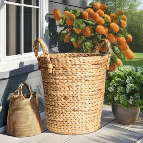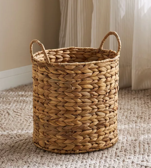 Wholesale Bohemian Style Braided Water Hyacinth Floor Basket with Two Sturdy Loop Handles for Multipurposes Made in Vietnam