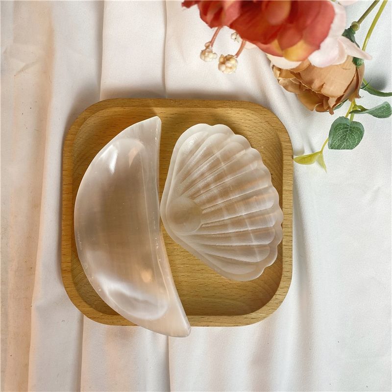Wholesale Bohemian Style Natural Healing Polished Crystal Bowls Mixed Clear Selenite Plate and Bowl for Decoration
