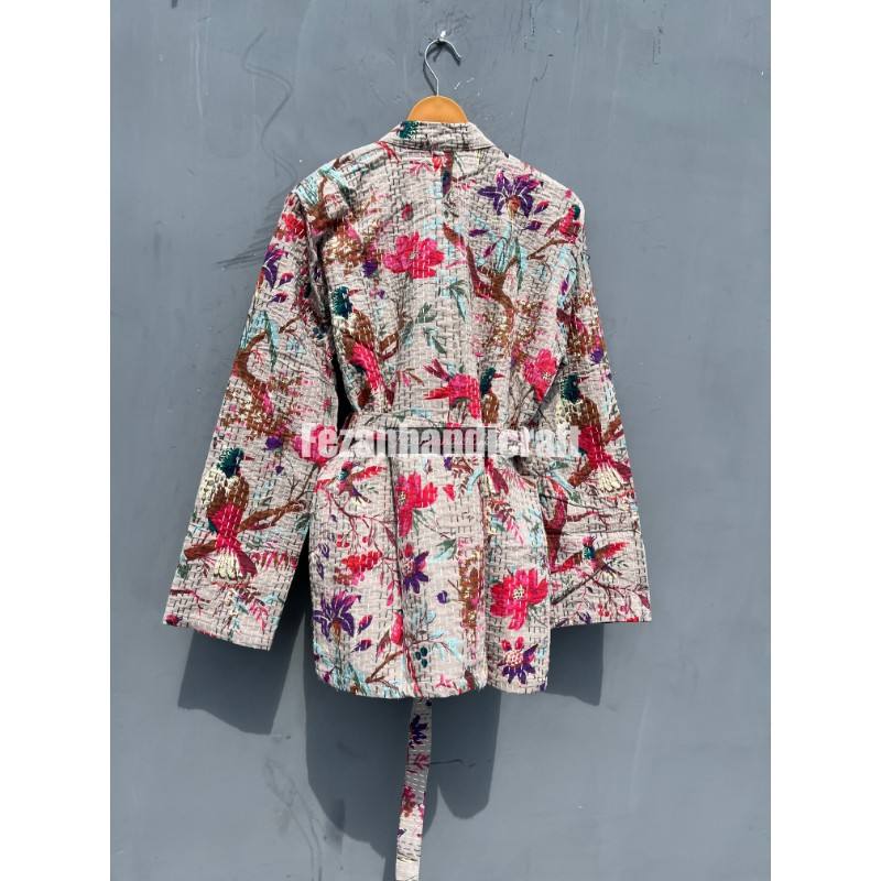 Wholesale Boho Hippie Quilted Kantha Jacket Handmade Floral Printed Cotton Knitted Winter Jacket Autumn Floral Printed Women's