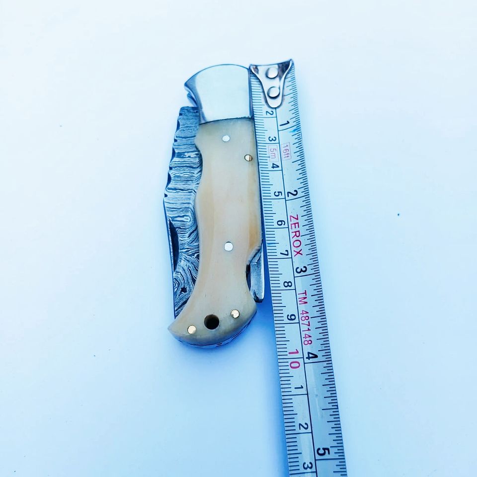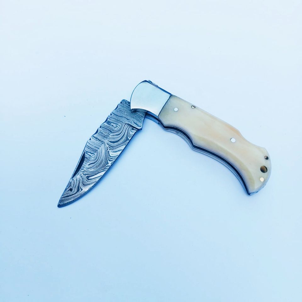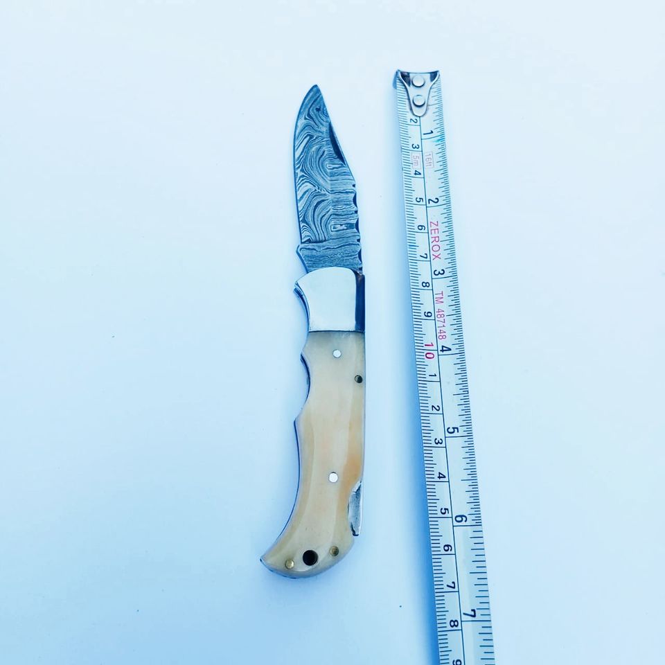 Wholesale Bone Handle Outdoor Camping Folding Knife Damascus Steel Pocket Knife Suitable for Outdoor Camping and Hunting