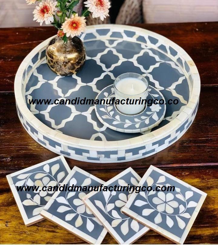 Wholesale Bone Inlay Tray Hot Selling Product Large Size Tray Home Table Decor Food Fruits Dinner Serving Tray for Best Sale