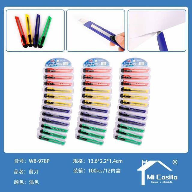 Wholesale Box of 100 Pieces PP and Iron Utility Knives in Assorted Colors Cutting Knife with Steel Blade and Plastic Handle