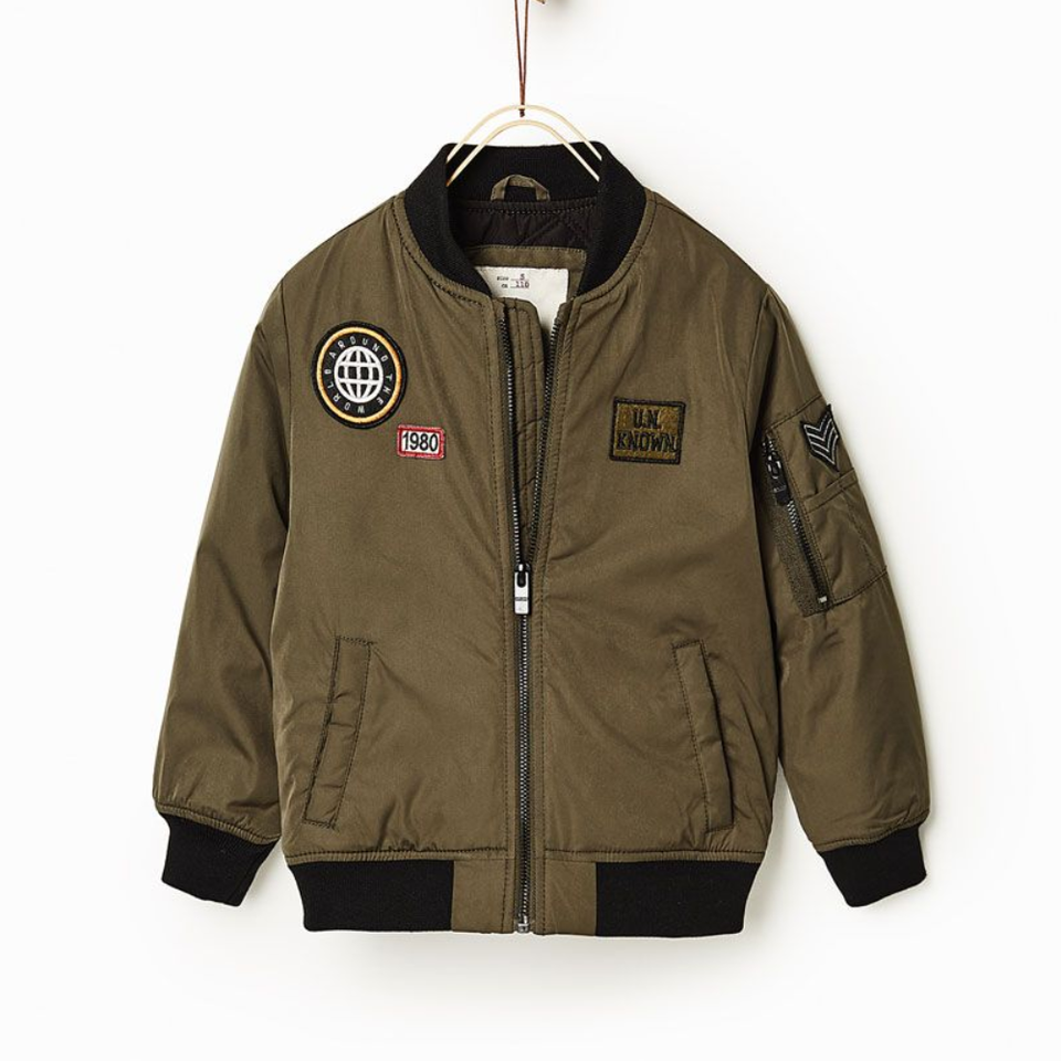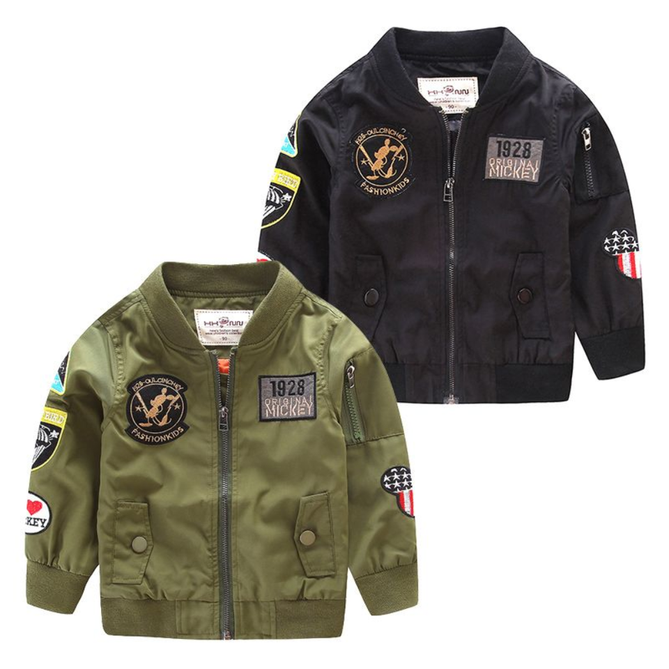 Bomber Jacket for Boys and Girls Fashionable Casual Outerwear with Cartoon Patch Style Zipper Closure for Winter