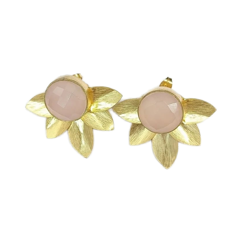 Wholesale Brass Gold Plated Flower Earrings Pink Chalcedony Floral Gemstone Jewelry for OEM Bulk Orders Online Store Earring Lot
