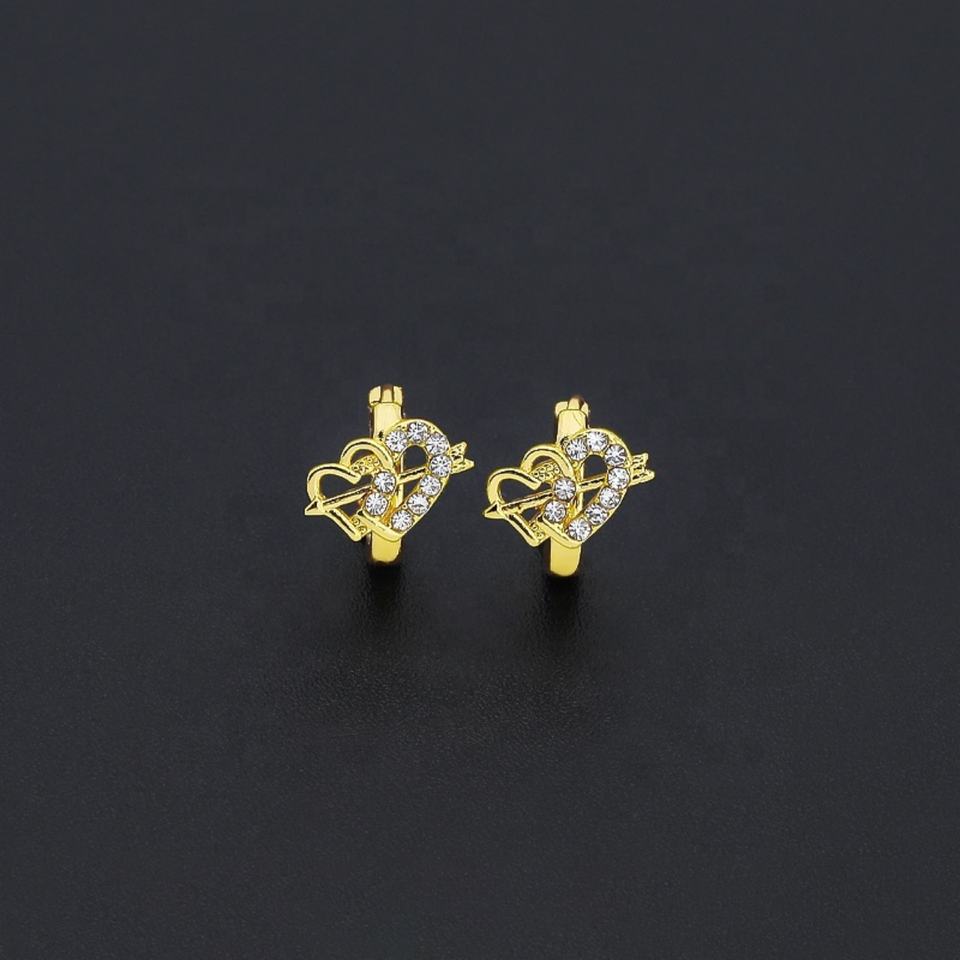 Wholesale Brass Huggie Earrings with Cubic Zirconia Chunky Heart Shape Tassel Pattern-for Wedding Engagement or Gift