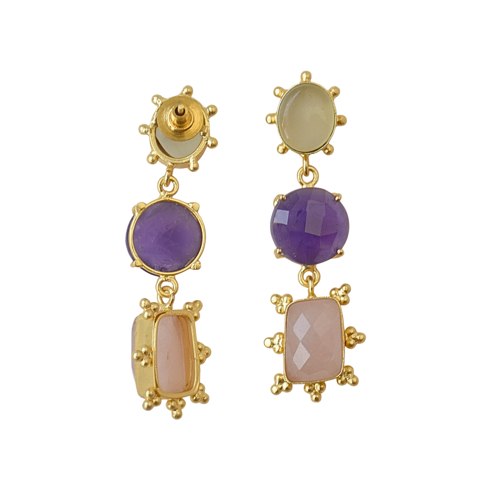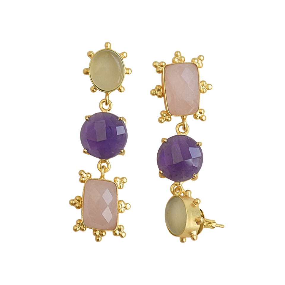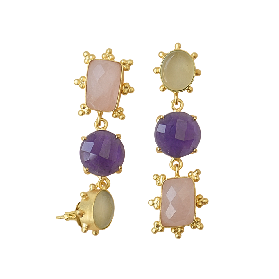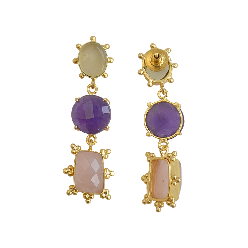 Natural Stone Triple Layer Earring
