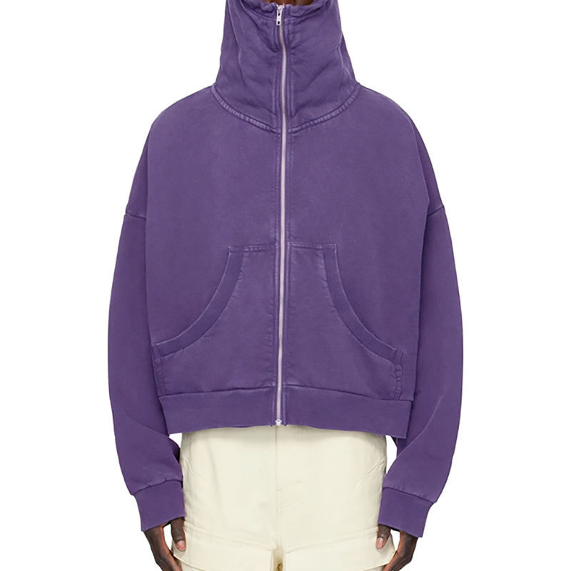 Wholesale Breathable Grey Drop Shoulder Heavyweight Acid Wash Full Zip Zip up Hoodies Oversized Sweatshirts For Men Pakistan