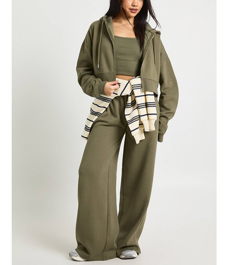 Wholesale Breathable Winter Running Jogging Suit French Terry Zipper Hood Jacket Extended Waist Wide leg Women Active Tracksuit