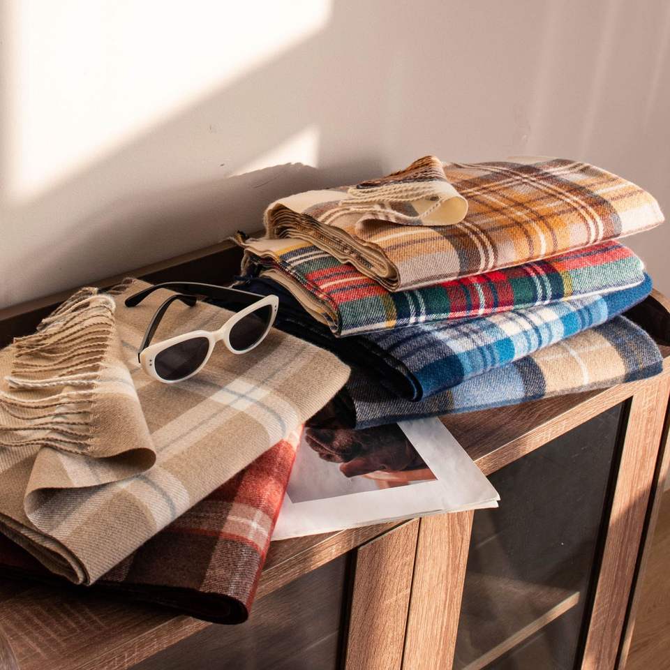 Wholesale British Style Plaid Faux Cashmere Knitted Scarves for Women Commuter-friendly Warm Neck Protectors Cold-proof Shawls