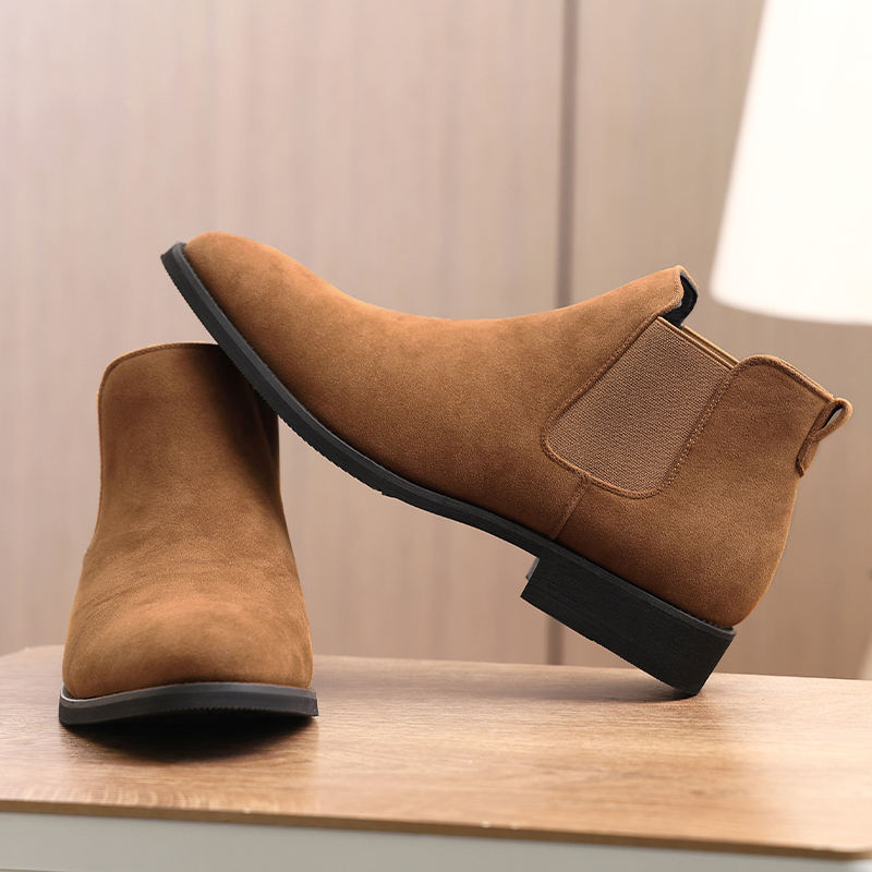 Wholesale Brown Suede Chelsea Boots Men Elevator Shoes Height Increasing Dress Shoes
