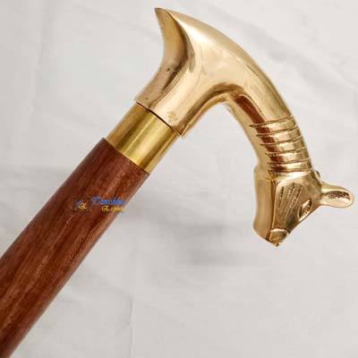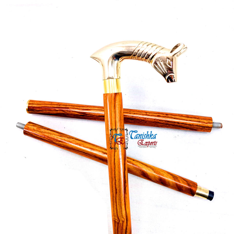Wholesale Brown Wooden Walking Stick With Brass Polish Rat Design Handle 3 Fold Walking Stick Gift Item For Elderly People