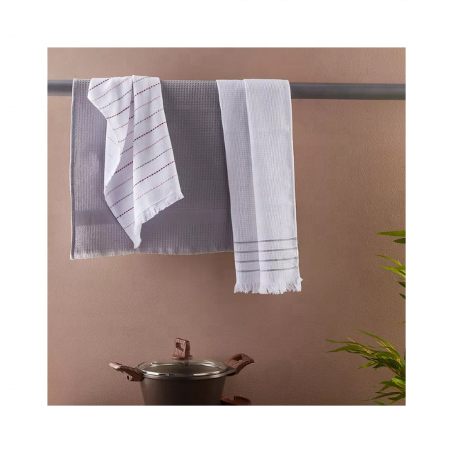 Wholesale Budget-Friendly Custom Golf Designs Soft Cotton 15x24 Inches 200 Gsm Unique Grey White Striped Kitchen Tea Towel Sets