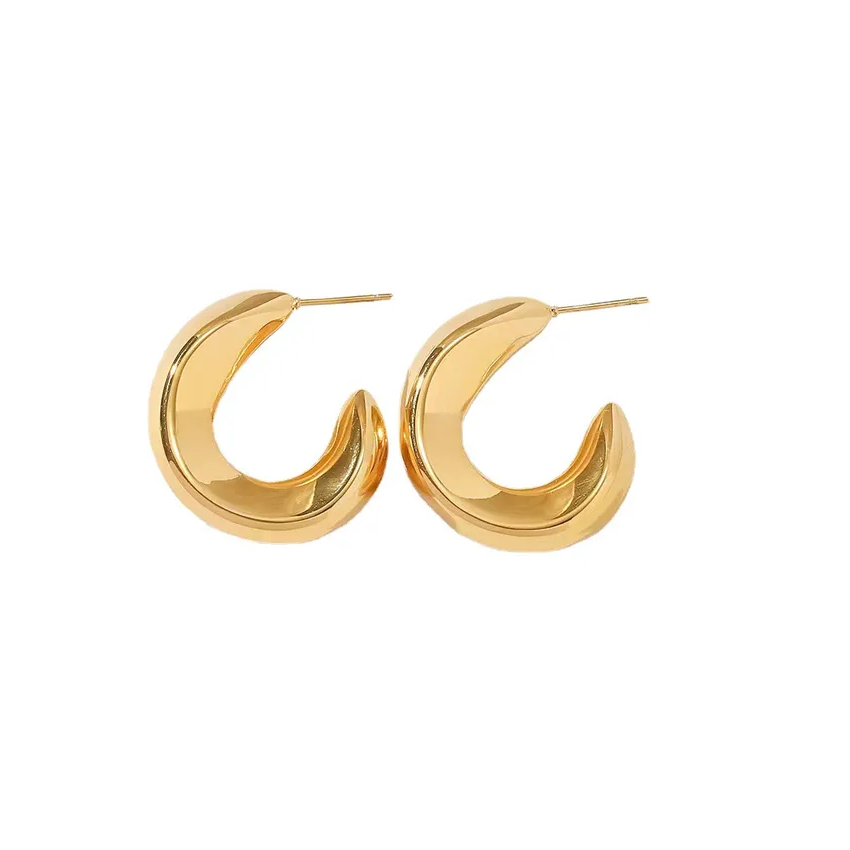 Wholesale Bulk 18k PVD Gold Plated Screw Twisted Earring Stainless Steel Smooth Hypoallergenic Chunky Hoop Earrings