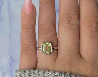 Wholesale Bulk 925 Sterling Silver Jewlery Fine Jewelry Women Octo Cut Ring Natural Lemon Quartz Ring Eternity Vermeil
