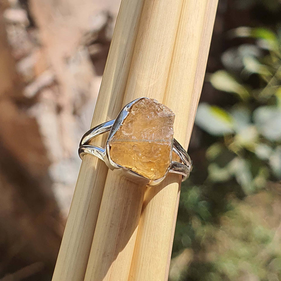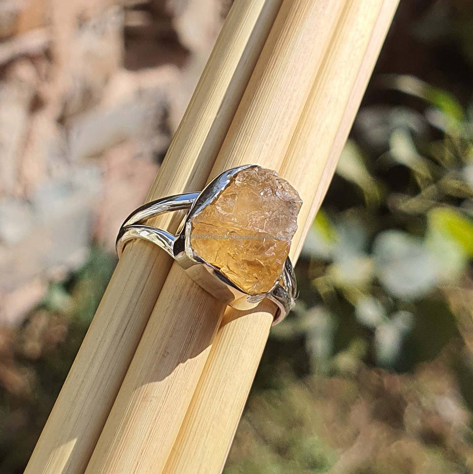 Handmade 925 Sterling Silver November Birthstone Ring Natural Citrine Rough Gemstone Diamond Gold Plating for Wedding Engagement