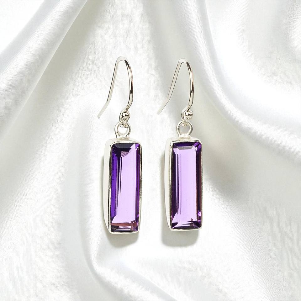 Wholesale Bulk 925 Sterling Silver Rectangle Bar Drop Amethyst Gemstone Earrings for Women Trendy Dainty S925 Certified