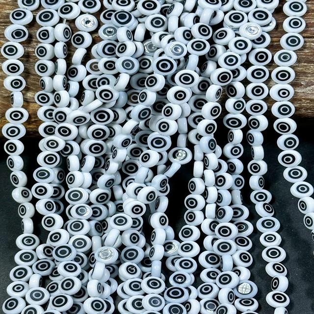 Wholesale Bulk Beautiful White Black Evil Eye Flat Coin Shape Crystal Lampwork & Glass Beads for Jewelry Making & Crafting