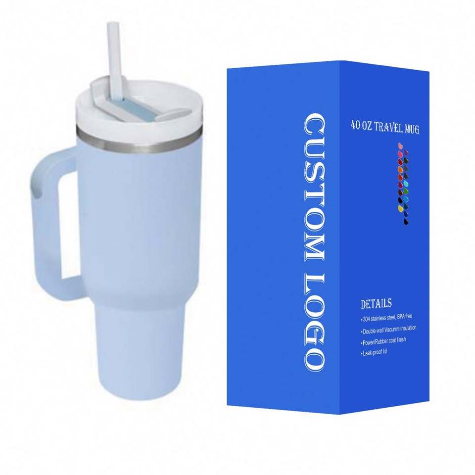 Wholesale Bulk Custom Stainless Steel Insulated Travel Mug Tumbler With Handle and Straw Lid