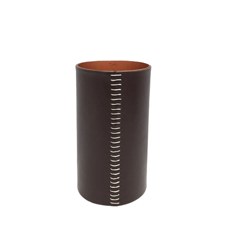 Wholesale Bulk Decorative Leather Round Shape Flower Vase Black Color Custom Size Crystal Flower Vase Handmade