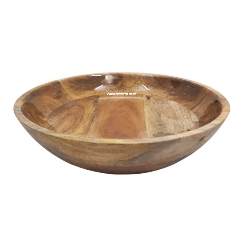 Wholesale Bulk High Quality Wooden Round Large Bowl Natural American Design Salad Serving Mixing Bowl for Restaurant Dinnerware