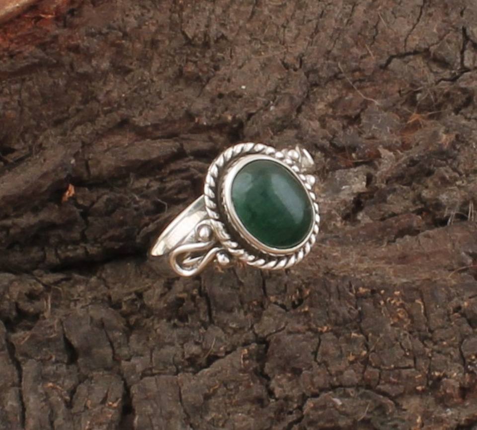 Wholesale Bulk Natural Green Jade Women's Classic 925 Sterling Silver Bezel Setting Wedding Party Gemstone Finger Ring Jewelry