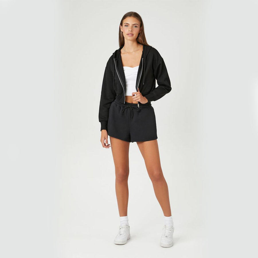 Wholesale Bulk Order Women Black 300 GSM Fleece Basic Cropped Zipper Hoodie for Sale With Custom Logo Men Zip up Hoodies