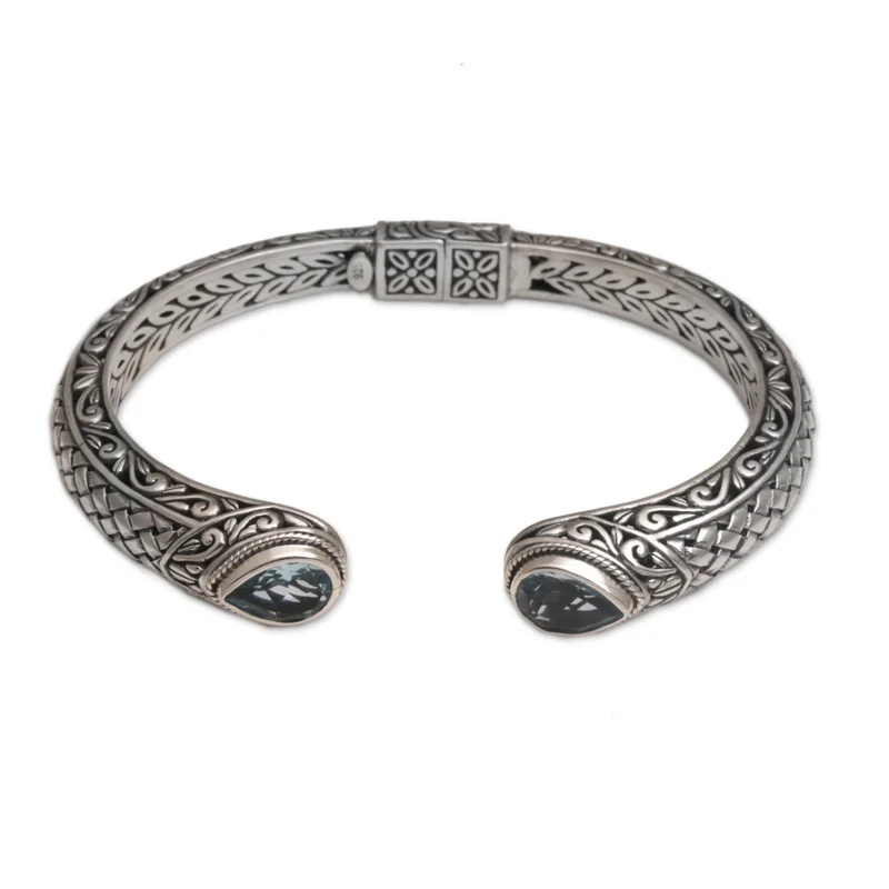 Wholesale Bulk Price Fashion Jewelry Blue Topaz and Sterling Silver Cuff Bracelet Boho Dainty Jewelry Handmade