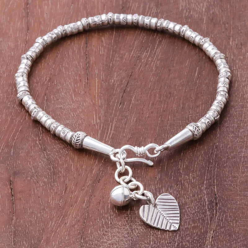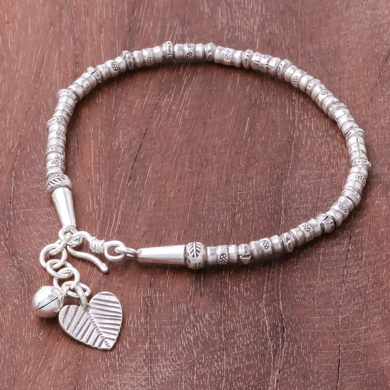 Wholesale Bulk Price Jewelry Boho Minimalist Design Silver Beaded Heart Charm Bracelet Fashion Jewelry For Her