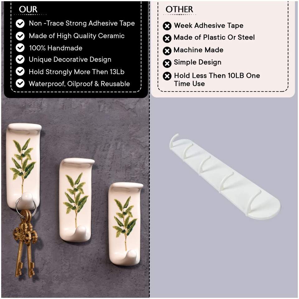 Wholesale Bulk White Adhesive Bathroom Wall Hooks Ceramic Coat Hooks and Hanger Green Leaf No Drill Wall Hooks HK-2003