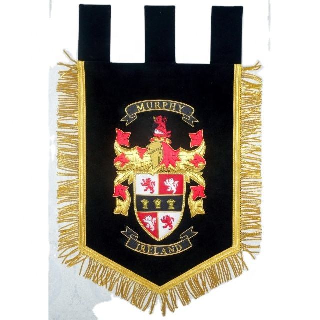 Wholesale Bullion Wire Embroidered Pennant Flag with Gold Fringe High Quality Hand Embroidered Ceremonial Flags OEM Banners