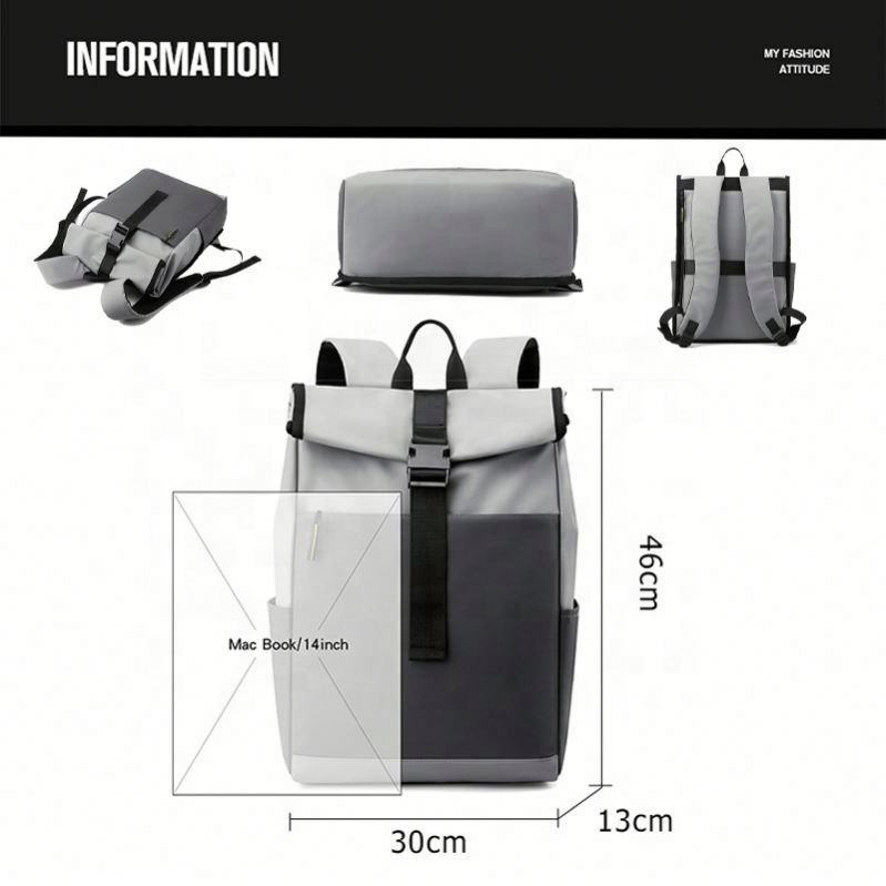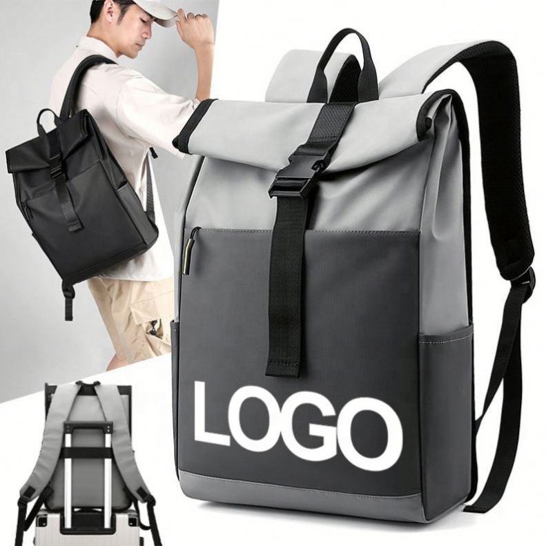 Wholesale Business Men Outdoor College Backpack Custom Large Capacity Anti Theft Expandable Roll Top Computer Bag With Logo